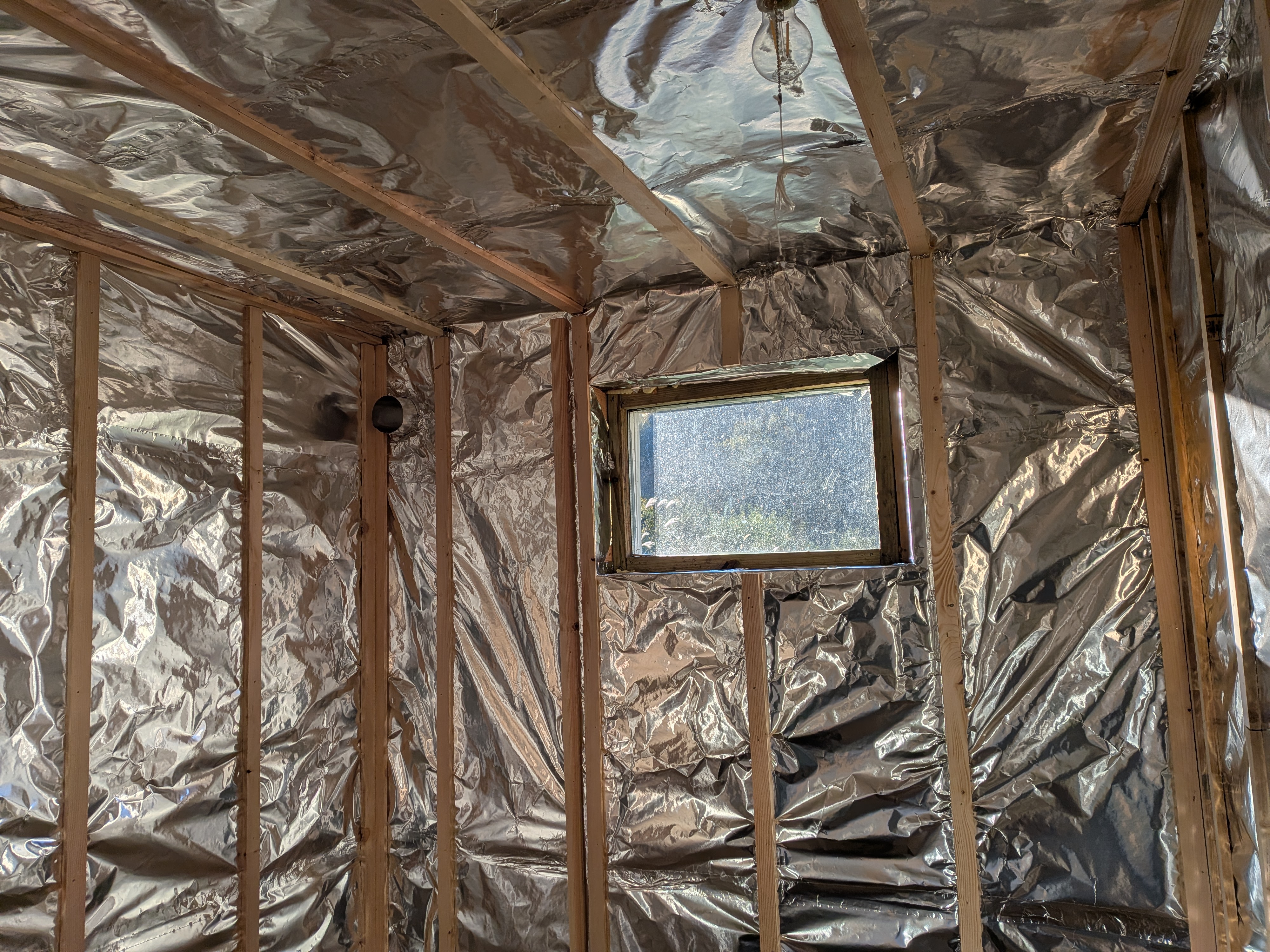 The sauna space, roughly 8’ square had an interior foil vapor barrier